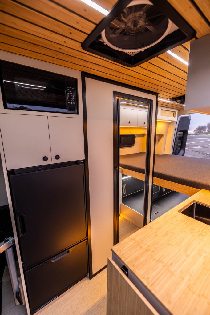 The SUMMIT M1 is our flagship MWB layout and is a premium 4×4 off-road adventure van built on the Mercedes-Benz Sprinter MWB (Medium Wheelbase) 144 platform. The M1.3puts a spin on our popular layout with a big shower with toilet, and a large 175L fridge