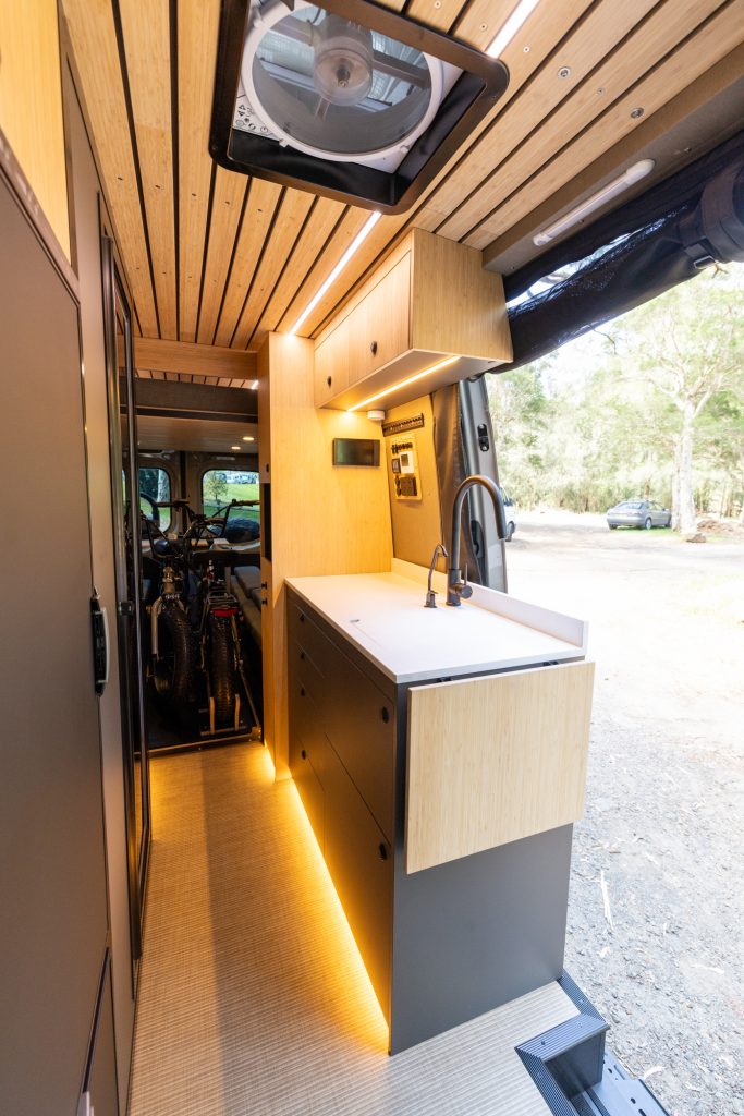 Extensive design work with the client brought to life this amazing build featuring a Happijac bed lift system.
